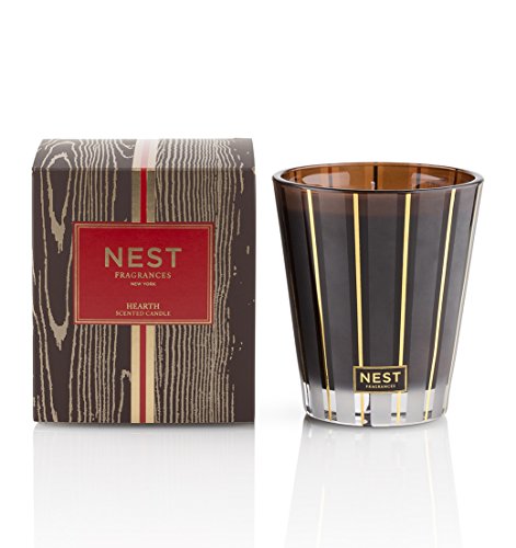 NEST Fragrances Hearth Classic Candle has the aroma of a wintertime fire created by combining rich oud wood with frankincense and hints of smoky embers.