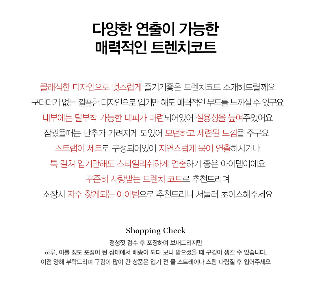 | 안감탈부착(Lining detachable) | 가능 |