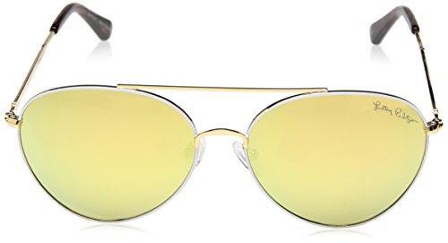 Lilly Pulitzer Women's Isabelle Polarized Aviator Sunglasses, Gold, 56 mm
