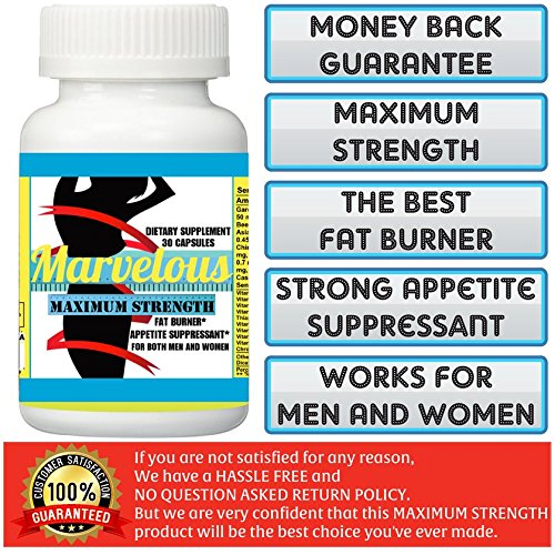 ORIGINAL PRODUCT ONLY SOLD by US MARIPOSA AND FULFILLED BY AMAZON. 1 BOTTLE (30 CAPSULES) MARVELOUS SLIMMING MAXIMUM STRENGTH WEIGHT LOSS SUPPLEMENT. ATTENTION : FOR THE AUTHENTIC PRODUCT PLEASE LOOK FOR US MARIPOSA ON YOUR PRODUCT AND PACKAGING. ONLY PURCHASED IF SHIPPED BY AMAZON OR BY US MARIPOSA. Suitable For Men and Women. Reach your ideal weight quickly and easily. Ingredients : Garcinia Cambogia Fruit Extract 18 mg, Bitter Orange Extract 50 mg, Bee Pollen Powder 75 mg, Royal Jelly Powder 25 mg, Bee Propolis Powder 25 mg, Green Tea Leaf Extract 0.85 mg, Asian Ginseng Root Powder 0.55 mg, Saffron Bulb Extract 0.45 mg, Lotus Leaf 90 mg, Brown Rice Bran Powder 0.45 mg, Chinese Yam Root Powder 85 mg, Radish Root Powder 0.6 mg, Lycium Fruit Powder 68 mg, Gynostemma Root Powder 0.7 mg, Noni Fruit Powder 0.7 mg, Hawthorn Berry Fruit 0.4 mg, Aloe Vera Leaf Powder 1 mg, Fo-ti Root Powder 0.8 mg, Cassia Seed Extract 0.75 mg, Rhubarb Root Powder 1.05 mg, Senna Leaf Powder 0.65 mg, Dietary Fiber 55 mg, Vitamin E (as DL Alpha Tocopherol Acetate), Vitamin A (as Acetate), Vitamin C (as Ascorbic Acid), Vitamin D (as Cholecalciferol), Thiamine (as Thiamine HCL), Vitamin B2 (as Riboflavin), Vitamin B3 (as Niacin), Vitamin B6 (as Pyridoxine HCL), Vitamin B12 (as Cyanocobalamin), Chromium (as Chromium Picolinate) Other ingredients : Magnesium Stearate, Rice Flour, Gelatin (Capsule), Dicalclium Phosphate, FD&C Red No. 40 Percent Daily Value based on a 2000 calories diet. ++ %Daily Value not established.Feature