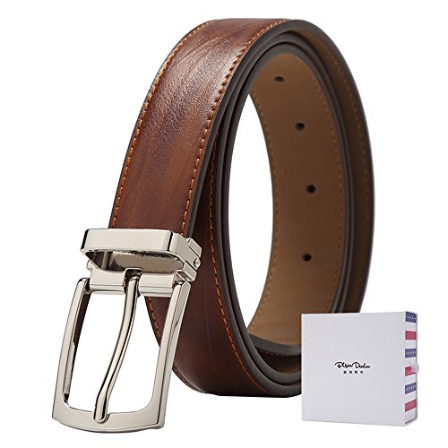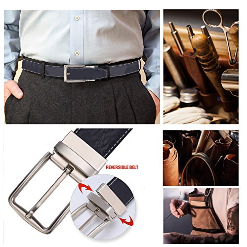 Versatile and Reversible: The Bison Denim men's belt features a high fashion design on both sides, you can finish off any look in black or brown with just a twist of the buckle (see attached photo), so you are getting 2 leather belts in a practical 1 belt