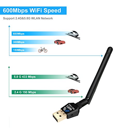 Specification ? Network standards: IEEE 802.11a / b / g / n / ac ? Frequency Width: 2.4G (2412MHz-2483MHz) /5.0G (5150MHz-5825MHZ) ? Wireless Security: WEP / WPA / WPA2 / WAP / WPS ? RF Power: 2.4G: 16DBm / 5.0G: 13DBm ? LED light: status ? Transmission Rate: 600 Mbps (5G: 433Mbps / 2.4G: 150Mbps) ? Supported: Linux / Windows XP / VISTA / 7 / 8/10, Mac OS X 10.6-10.12