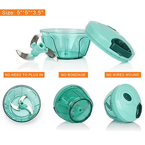 Safe Material - Made of durable,easy clean BPA free plastic & stain steel blades;Blades and bowl are dishwasher safe.Size:5"*5"*3.5"