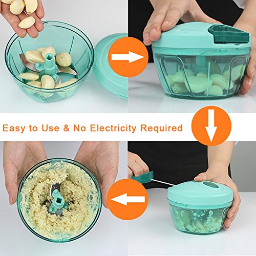 *3 Blades Design:Features sharp stainless steel blades for fast chopping, comfort soft grip lid,anti-skid base,easy pull cord,large handle for easy leverage.