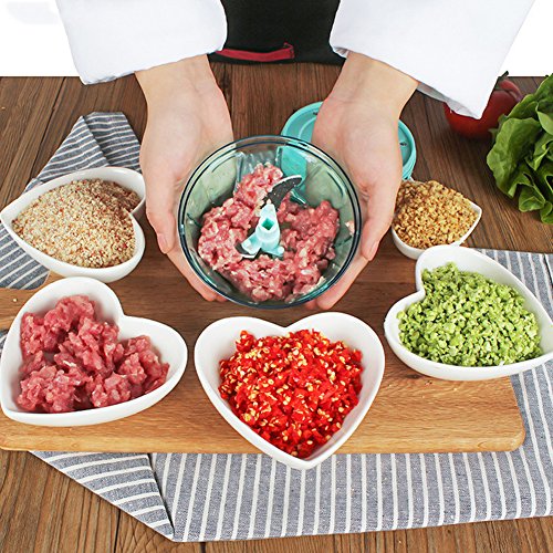Chopping fruits, vegetables, nuts, and herbs or create fresh salsas, pestos, coleslaws, salads in just seconds.Life is busy,and we don't always have time to spend on chopping fine ingredients.Simply pull the retractable cord and the super-sharp blades will slice and dice all your favorite foods from coarse to finely chopped.
