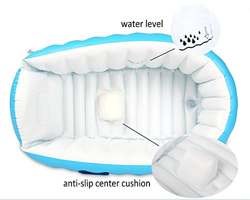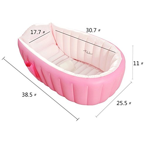 -. Feature : Material: Environmental green non-toxic PVC / Inflated dimensions: 38.5"x25.5"x11"/98cm*65cm*28cm(L*W*H) / Portable, inflatable, soft, safety, practical, durable, easy to use and clean / Ideal for ages from 0 to 3 years(pack of 1, contains pool, foot pump and repair kit) / Central air column design can be aerated separately, prevents baby falling in water and easy for mother to clean baby