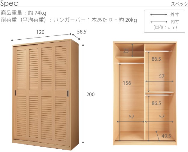 ●左下部有効内寸:幅57x奥行49.5x高さ163cm(バー下156cm)