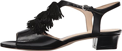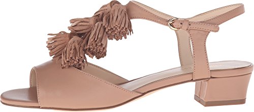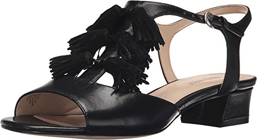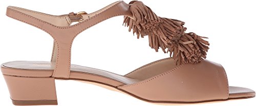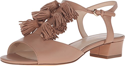 Low-heel dress sandal featuring T-strap topped in six tassels