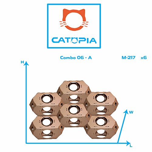 Does your kitty get bored and tired of regular cat trees? Here comes the cat play house! Made of reinforced cardboard, not only Recyclable and Eco-friendly but also lasts a lot longer and withstands a lot more damage than a regular carton. Water repellent feature prevents damages from accidental cat urine and easy to clean. Assembly Required. FEATURES MODULAR DESIGN -?Build and Create Mazes Small to Large.?Connect additional pieces for a truly amazing Catopia! SUPERIOR MATERIAL - Our Catopia kitty house is made of high-quality corrugated paper, can be strong enough to hold all kinds of small medium cats. Guarantee to meet the demands of active cats. EXCELLENT SUSTAINABILITY - The Eco-Friendly cardboard structure is made from corrugated paper. It is hard but not easy to deform, allowing active cats to enjoy the fun of playing. ENJOY THE FUN OF DIY - Designed for assembling by yourself with endless joy. We provide the manual to help you to finish it. Please follow the instructions to assemble it and every part should be connected well 2-IN-1 DESIGN - It is a toy as well as a cat house with internal and durable corrugated boards which are designed for cats to scratch. Specifications Material: Corrugated Paper Dimensions: M-117 -?11.4*11.4*12 in M-317 -?19.7*9.8*9 in M-217 -?21.7*21.7*14.6 in M-417 -?21.7*21.7*5 in 0 |