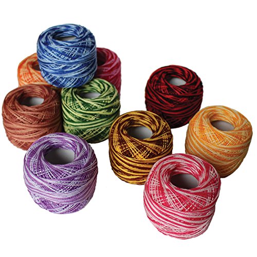 10 Pcs Cotton Knitting Thread - Stripy Design Cotton Yarn in Assorted Colors for Hand Quilting DIY Thread Crafts - 170 metre Cotton Thread Balls