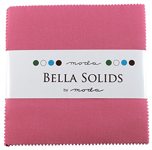 - Includes 42 fabric squares from the Moda Bella Solids 30's Pink 9900-27 colorway; neatly stacked and secured with a paper strap