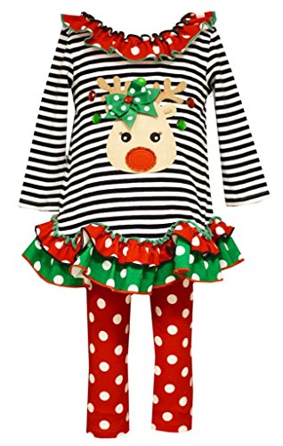 -. Binding : Apparel -. Brand : Bonnie Jean -. Color : Multi -. Department : baby-girls -. Feature : Bonnie Jean Collections / Ruffled Dress and Leggings Set / Red, Black and White Colors / Reindeer Applique / Machine Washable;Cold Water & Lay Flat to Dry -. Model : 8303 -. ProductGroup : Apparel -. ProductTypeName : SHIRT -. Title : Bonnie Jean Girls Baby Ruffled Top with Leggings Reindeer Applique