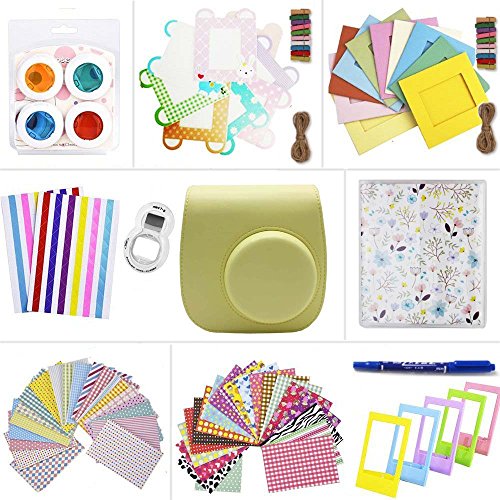 Shaveh Fujifilm Instax Mini 8/8+ Mini 9 Accessories, 11 in 1 Camera Set Include Camera Case/Album/Selfie Lens/Colored Filters/Wall Hang Frames/Film Frames/Border Stickers/Corner Stickers/Pen (Beige)