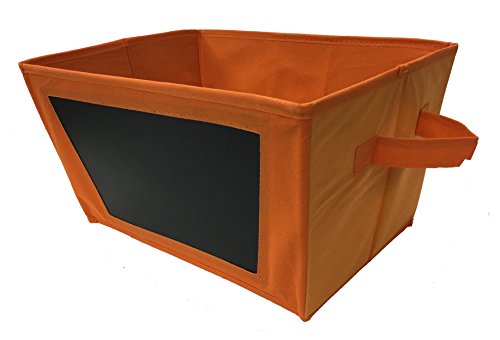 -. Title : Chalkboard Storage Bin - Foldable Fabric Tote - Orange - Closet Organizer, Toy Storage, Gift Basket, Baby's Room Storage