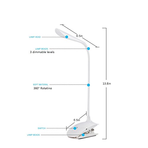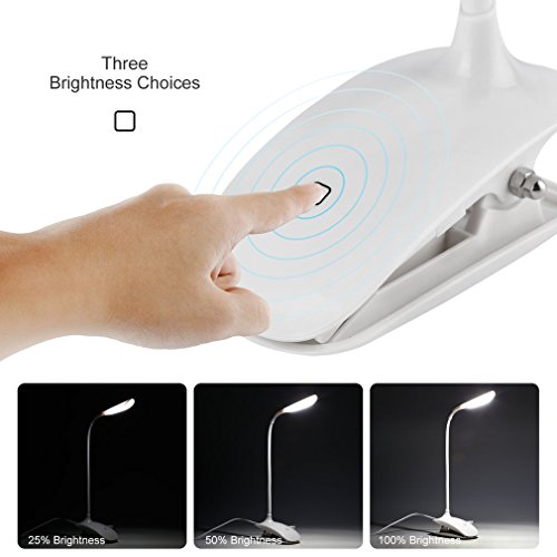 【LED Dimmable Clamp Light】 3-level adjustable brightness which is controlled by a touch switch. Natural, soft light is perfect for reading and protecting your eyes.