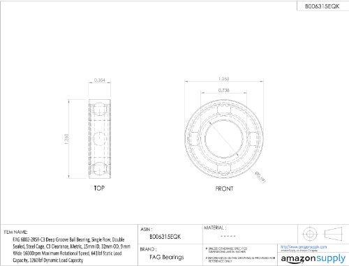 FAG 6002-2RSR-C3 Deep Groove Ball Bearing, Single Row, Double Sealed, Steel Cage, C3 Clearance, Metric, 15mm ID, 32mm OD, 9 mm Wide 16000rpm Maximum Rotational Speed, 641lbf Static Load Capacity, 1260lbf Dynamic Load Capacity