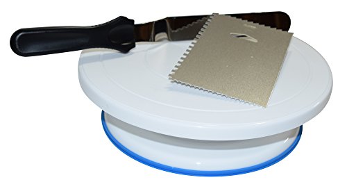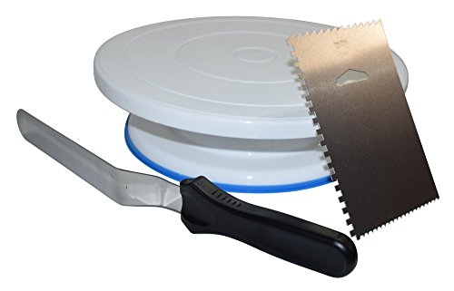 Revolving Cake Stand, 13" Angled Icing Spatula, AND 4-Sided Decorating Comb/Icing Smoother