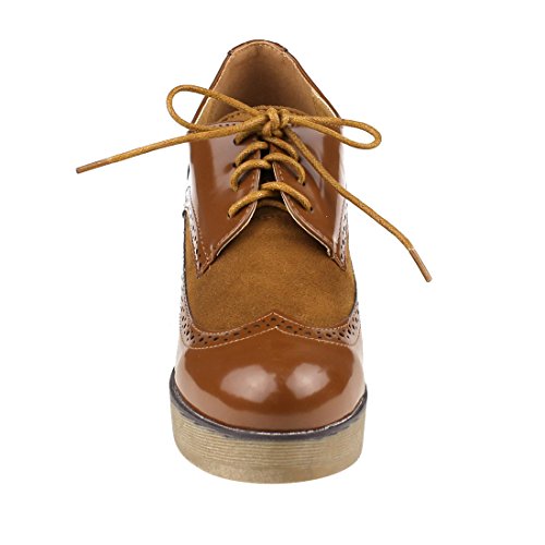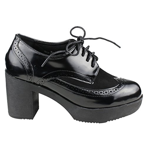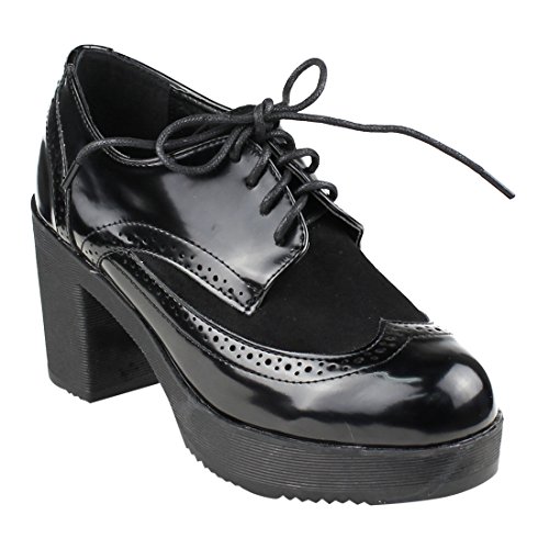 Product Description Lend dapper cool and dandy-inspired flair to your wardrobe in this pair of platform heeled oxford.Complete with patent faux leather and faux suede upper and a suave lace-up finish.A great suitable with cuffed denim or tailored suit trousers. 0
