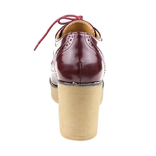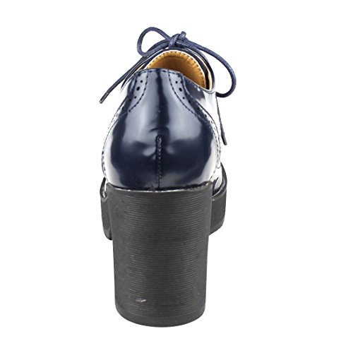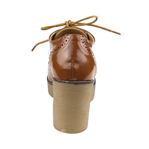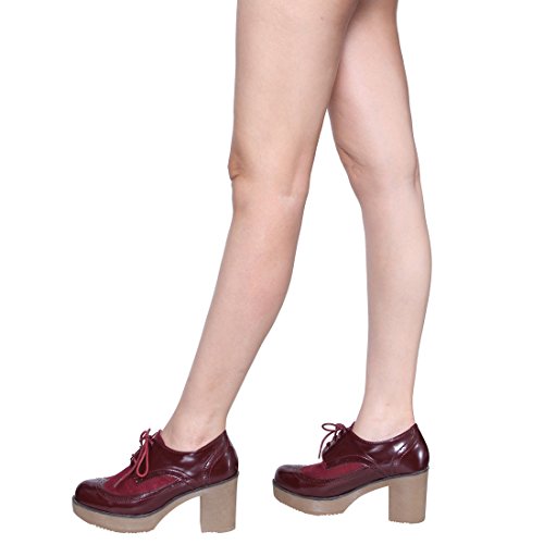 Beston EJ37 Women's Classic Fashion Lace Up Wing Tip Platform Chunky Heel Oxford