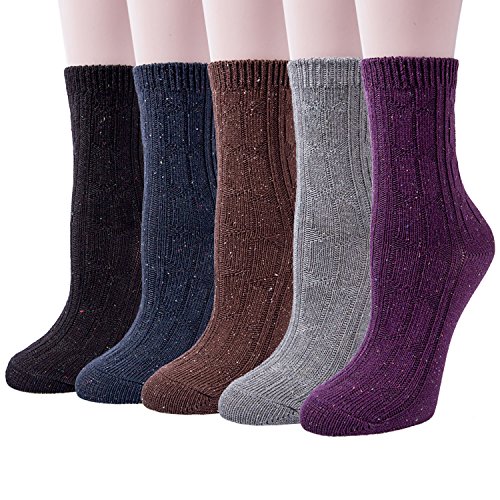 -. Title : 5 Pairs of Thick Knit Warm Casual Cotton Crew Winter Socks for Women