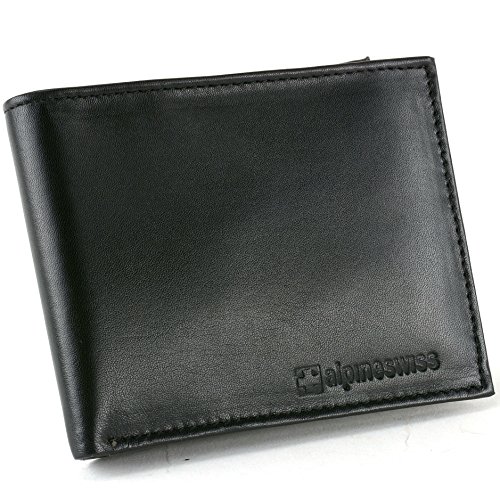 Alpine Swiss Men's Leather Bifold Wallet Removable Flip Up ID Window Black