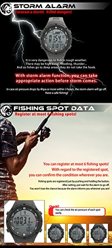 [Functions] Fishing Alarm Storm Alarm Record fishing place Record/ Confirm fishing data American Sensor Weather Forecast (Sunny/ Cloudy with sun/ Cloudy/ Raining)