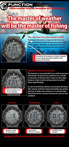 Altimeter Barometer Thermometer Countdown Timer Chronograph Alarm Day Current Time Water resistant depth:50 Meters