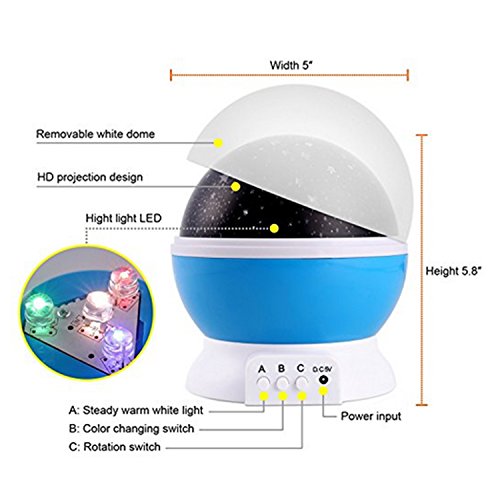 - ●COOL AND COOL DESIGN: the beautiful and solid shell and the color ornament make the whole projection night lamp look extremely bright and lovely.