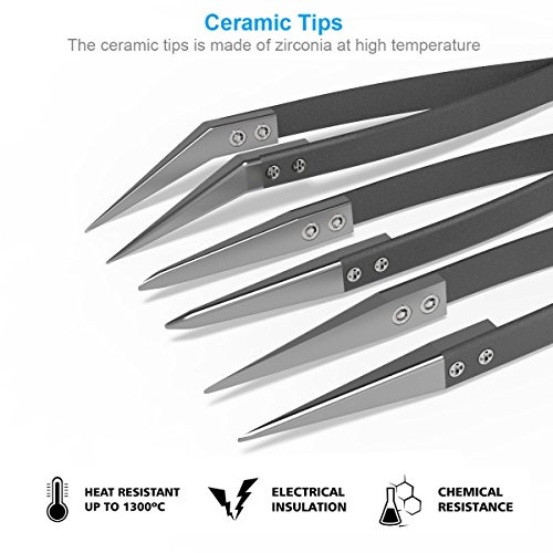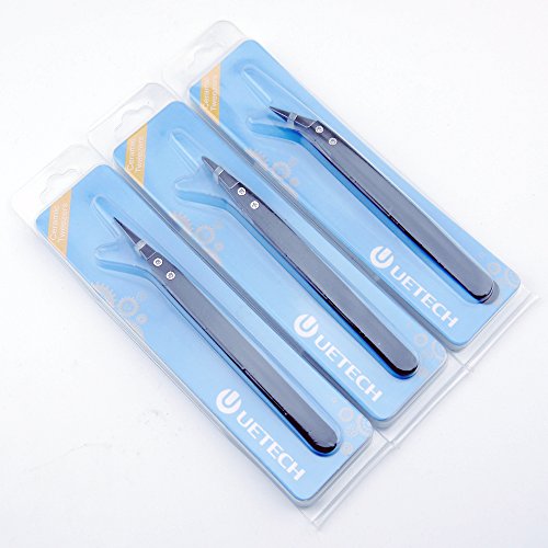 UETECH Black Ceramic Tweezers-Antistatic,Anticorrosion,Antimagnetic,Highly Heat Resistant up to 3000F(3Pack)