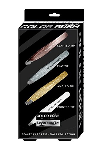 Color Rush By My Beauty Spot 4 Piece Complete Tweezer Set - Slanted, Flat, Angeled, & Pointed