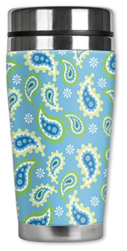 Mugzie 847-MAX "Blue Paisley" Stainless Steel Travel Mug with Insulated Wetsuit Cover, 20 oz, Black