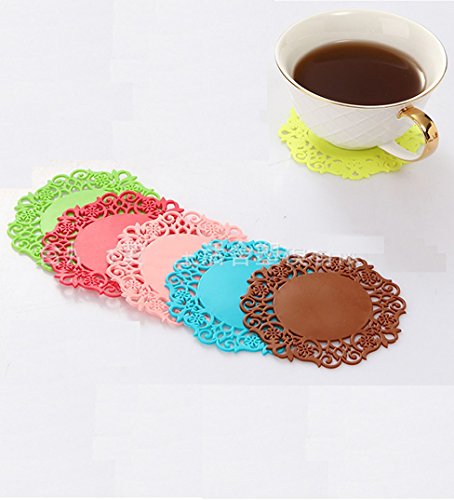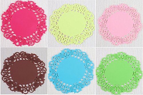 YY Goods Colorful Sweet Lace Cup Mat Silicone Coaster for Wine, Beer, Glass, Tea - Premium Quality Flexible Durable Coasters, Non Slip ,set of 6