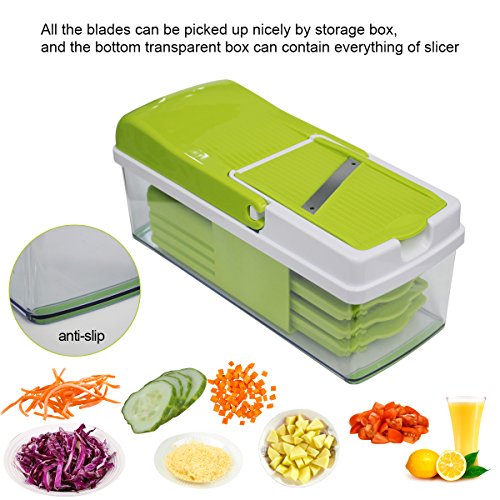- ★EXCLUSIVE CRISPER - For catching your freshly prepared food easily, You don't need to keep the slicer balance on top of a bowl anymore, helping retain more fruit or vegetable flesh, preserving nutrients and freshness, transparent chopping vegetables box with the lid, also can be used as a container, so you don't have worry about vegetable and fruit particles flying all around. And the material is safe, the plastic transparent box is no smell and durable.