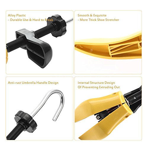 - Make Shoes Perfect Fit Your Feet:Shoe trees is made from hard ABS plastic material,premium steel shaft with umbrella handle,tough and durable you will be able to use it for a long time, easier to clean and store away.Plastic shoe stretcher has a vertical design due to which you can use it either on your left shoe or the right one.