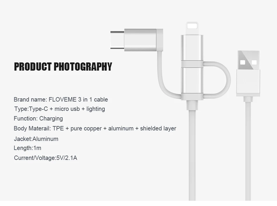 Feature 3:1 Meter length+Mini Convenient Deisgn,Portable and easy Carry Cable