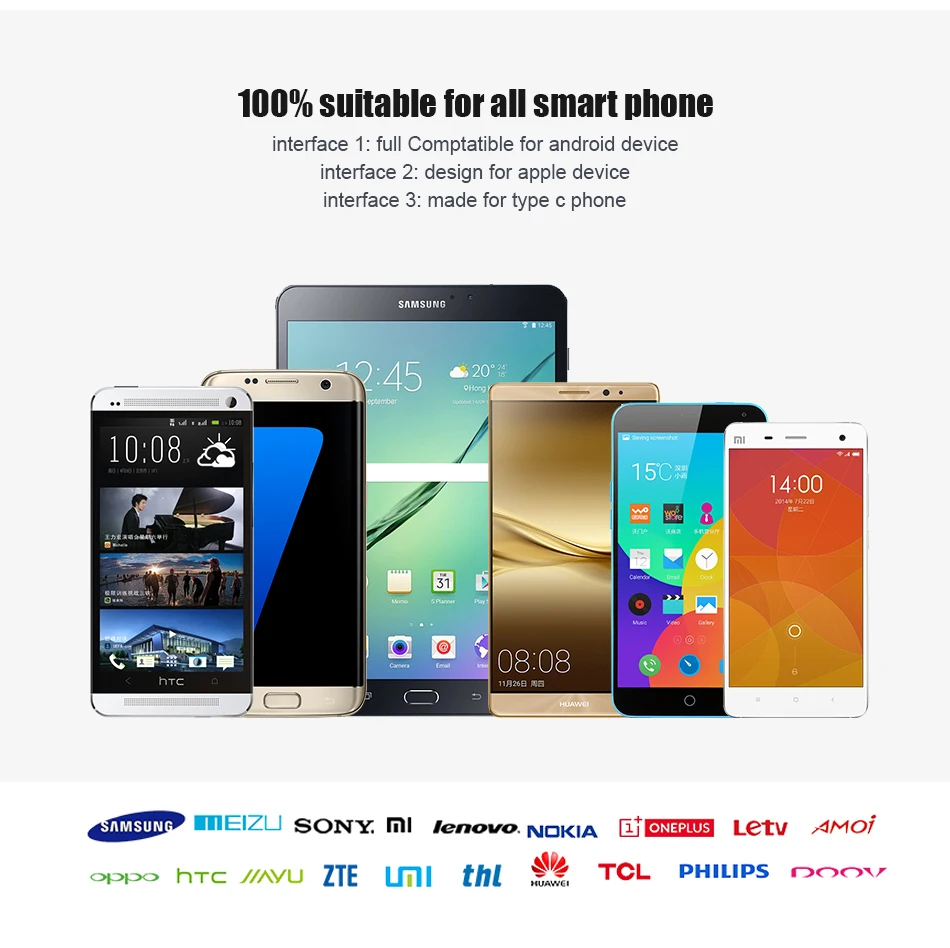 Feature 1:Triple Deisgn,100% Compatible For ALL Smartphone
