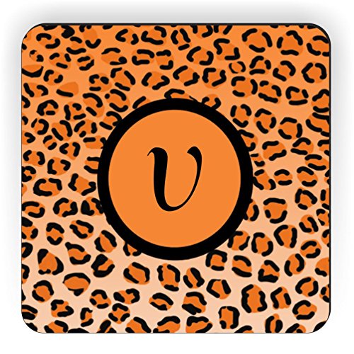 Rikki Knight Letter "V" Initial Orange Leopard Print Monogrammed Design Square Fridge Magnet