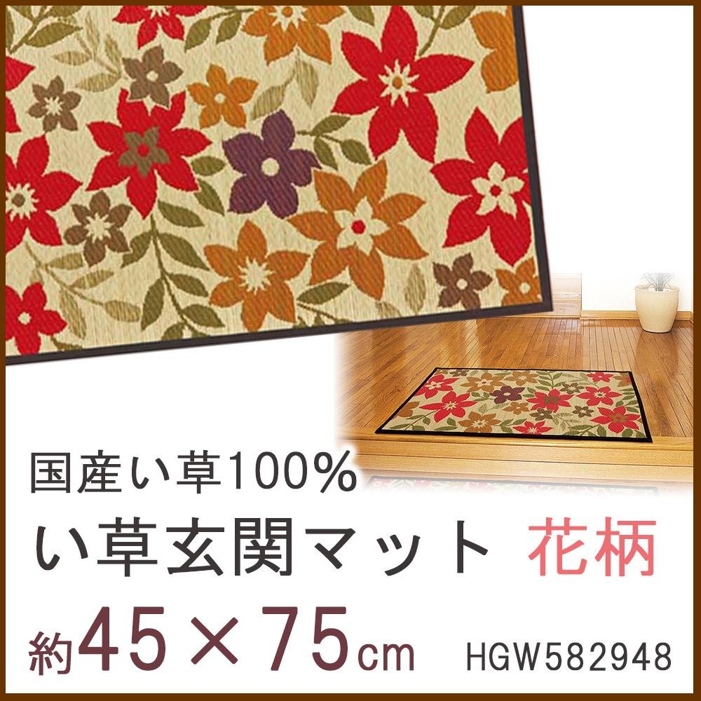 | 玄関をオシャレに演出するい草玄関マット♪「四重織」という織り方がされており、縦糸を約330本使用した四層構造で、柄が細く浮き上がっています。原料のい草は、色つやが良く粒揃いの良い柔軟性のあるい草を厳選して使用しています。 |