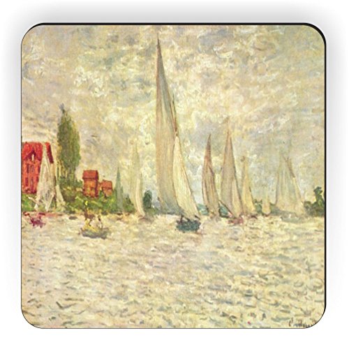 Rikki Knight Claude Monet Art Sailboats Regatte in Argenteuil Design Square Fridge Magnet