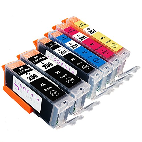 Sophia Global High Yield Compatible Ink Cartridge Replacement for Canon PGI-250XL CLI-251XL (Pack of 6: 2 PGI-250XL Large Black, 1 CLI-251XL Small Black, 1 Cyan, 1 Magenta, 1 Yellow)