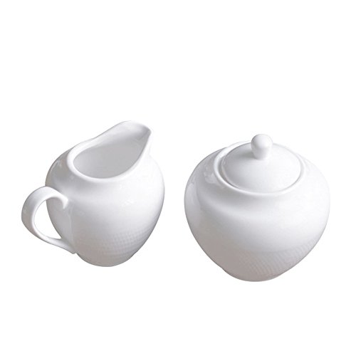 Product DescriptionCHOOLD Royal Embossed White Ceramic Sugar and Creamer Set,Creamer Serving Set for Coffee and Tea, Microwave Dishwasher Safe0