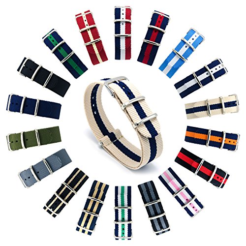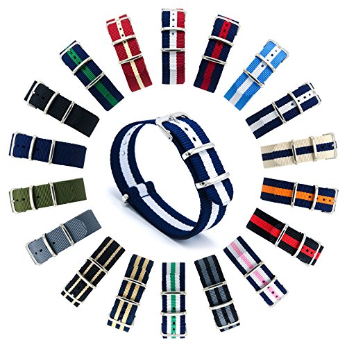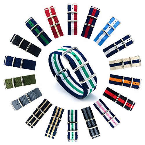 Do you hate those junk watch bands which will become smelly and cultivate bacteria? Do you want a breathable, sturdy, stink resistant, and machine washable premium nylon watch band but not afford those in jeweler? Do you want a casual, business, classical and simple watch band to pair with all of your daily outfit but even can not imagine what a watch band for all-purpose would look like? Obviously, our CIVO NATO nylon watch band will be your best choice! As the NO.1 TOP-RATED watch band on Amazon, our CIVO watch band will fulfill all your needs. Features: 1. PERFECT BALLISTIC NYLON AND CONSTRUCTION: Premium (tighter) weave 1.3mm thick ballistic nylon, slim rectangular hardware (stainless steel) with polished, brushed, PVD, and gold finishes, stitched construction. Unlike other Knockoffs using glue and cheap stitching will cultivate bacteria, our CIVO watch band is stink resistant and machine washable.