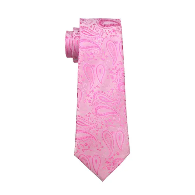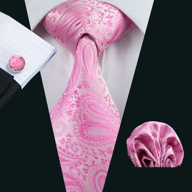 LS-379 뜨거운 새로운 남성 넥타이 핑크 페이즐리 100% 실크 자카드 짠 넥타이 손수건 커프스 세트 남성 정장 웨딩 파티 비즈니스