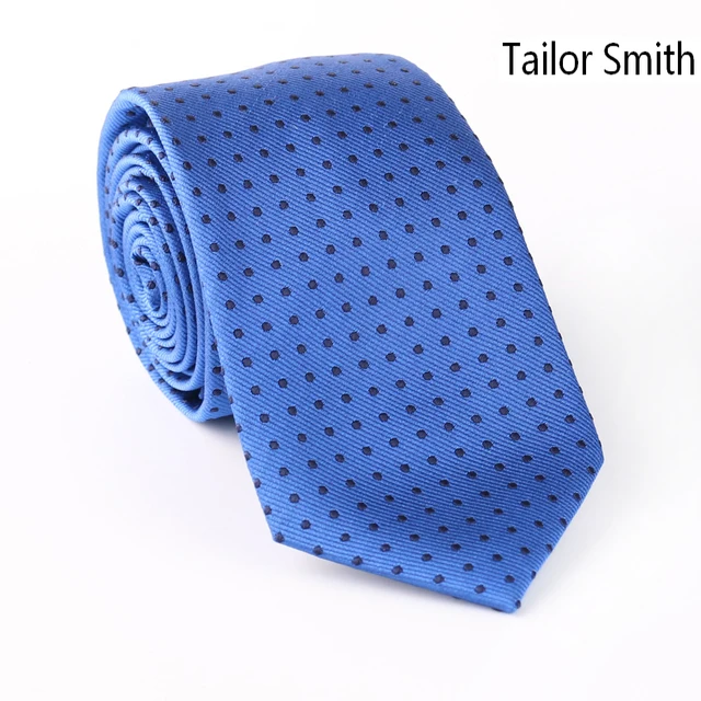 | [해외]재단사 스미스 남성 디자이너 블루 폴카 도트 비즈니스 웨딩 정장 넥타이 고급 실크 짠 자카드 넥타이 손으로 만든 최고 품질 |