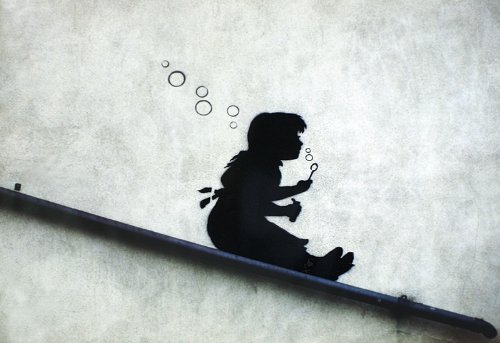 -. Title : Banksy Poster Graffiti Girl Sliding Bubbles (59cm x 42cm)