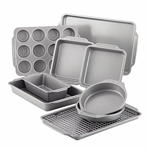 Farberware Nonstick Bakeware 10-Piece Set with Cooling Rack, Gray