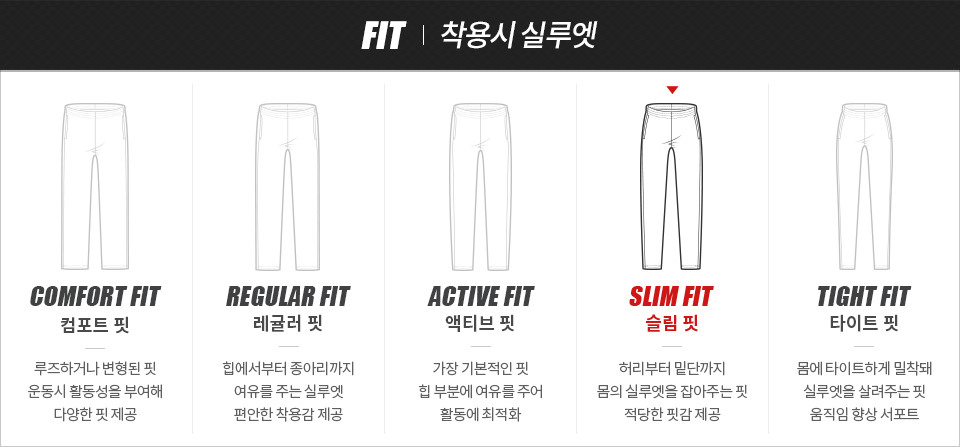| 소재 | 겉감1:폴리에스터85%폴리우레탄15% 겉감2:폴리에스터89%폴리우레탄11% 겉감3:폴리에스터84%폴리우레탄16% |