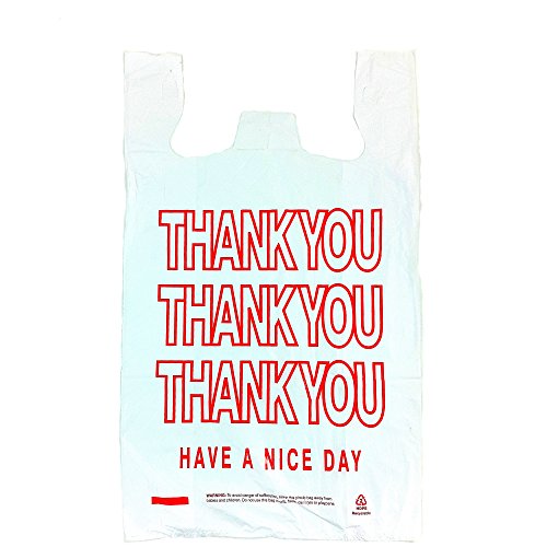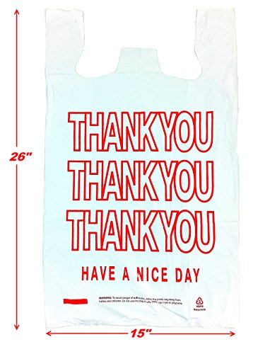 Pactogo Extra Large T-Shirt Thank You Bags 15" x 7" x 26" - Heavy Duty HDPE Plastic (Case of 500)
