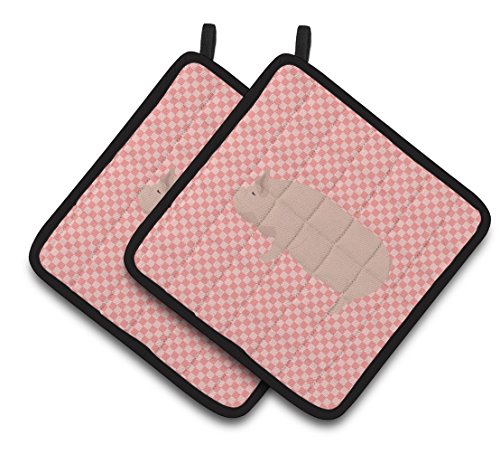Caroline's Treasures BB7937PTHD Welsh Pig Pink Check Decorated Pot Holder, 7.5" x 7.5", Multicolor