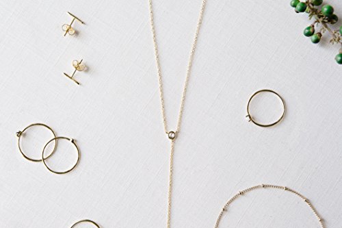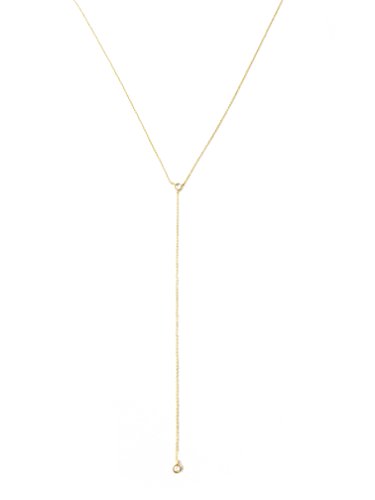 This lariat necklace features delicate, crystal clear pendants at the top and bottom of it's drop.
